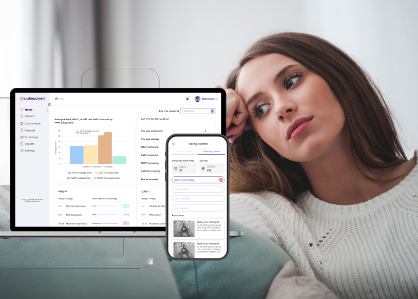 Calmscient highlights the inseparable connection between physical and mental health, monitoring trends in a patients well-being and alerting providers when potential risks surface.